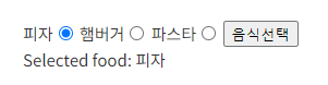 <label for="rad3"> 파스타</label><input type="radio" name="food" value="파스타" id="rad3" />