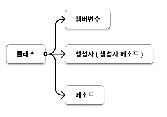 클래스는 멤버변수, 생성자, 메서드 3가지 요소로 구성