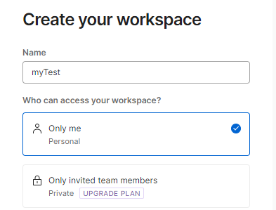 workspace 이름 작성 -> 카테고리 선택 -> Only me -> next 클릭