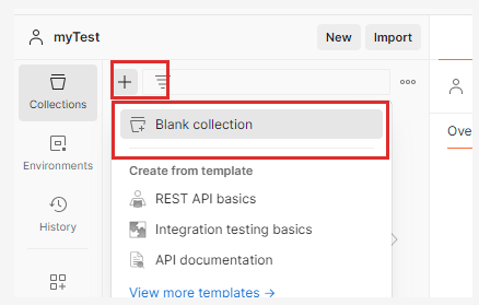 4. + 클릭 -> 카테고리 선택 -> Blank collection 선택