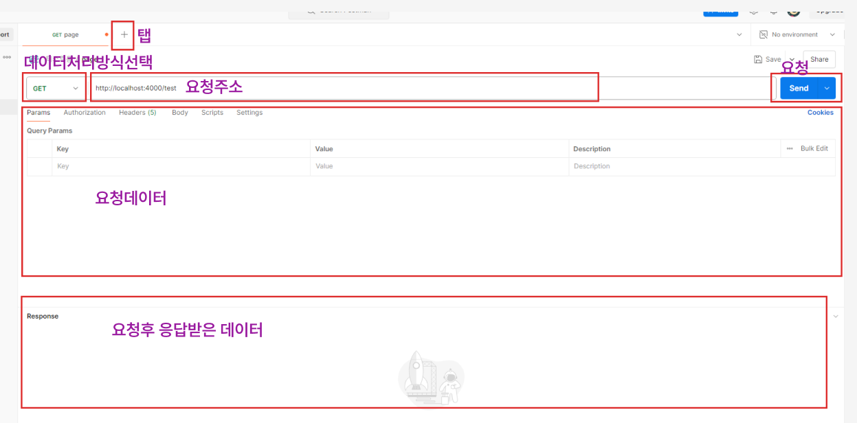 - HTTP 요청 버튼 : 요청을 보낸다.
