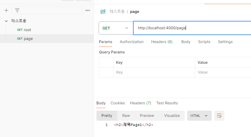 6. URL부분에 localhost:4000을 입력후 'send'버튼을 눌러