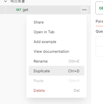 5. collection 이름변경 -> API 요청 테스트는 Add request를 클릭