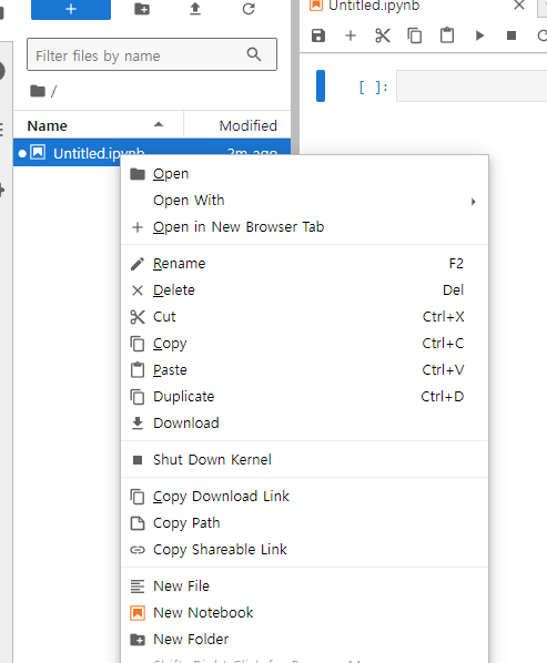 - 파일 탐색기: JupyterLab의 인터페이스에서 파일 탐색기가 통합되어 있어, 프로젝트 내 파일을 쉽게 관리하고 열 수 있습니다.