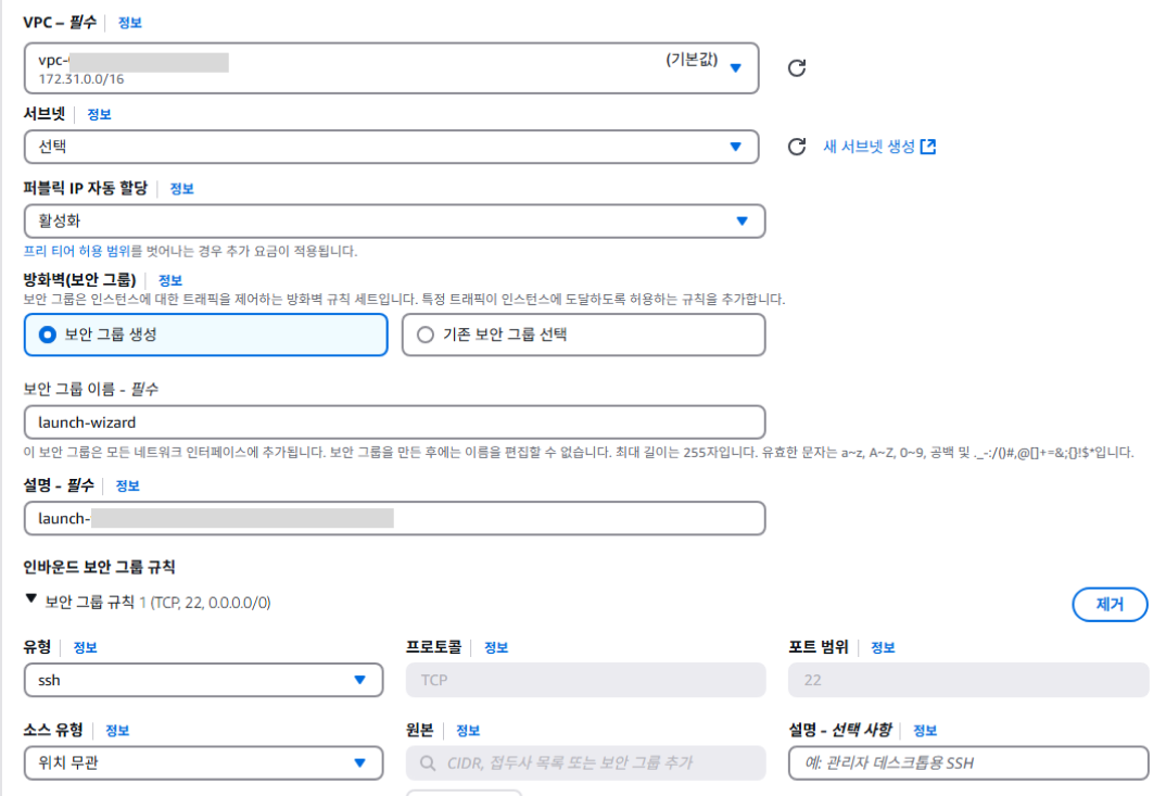 - 필요한 보안 그룹 설정: