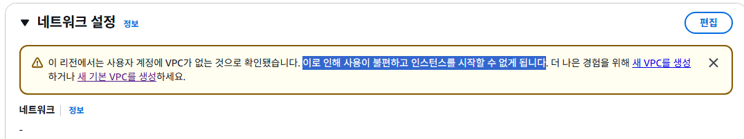 5. VPC 없으면 기본생성