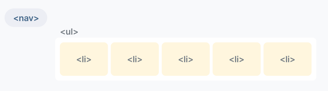 보통 <ul> 태그와 함께 사용되어 메뉴 항목들을 나열합니다. - <ul> 태그는 순서가 없는 목록(ul: unordered list)을 의미하며, 그 안에는 <li> 태그를 사용해 각각의 항목을 작성합니다.