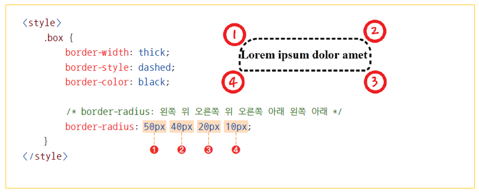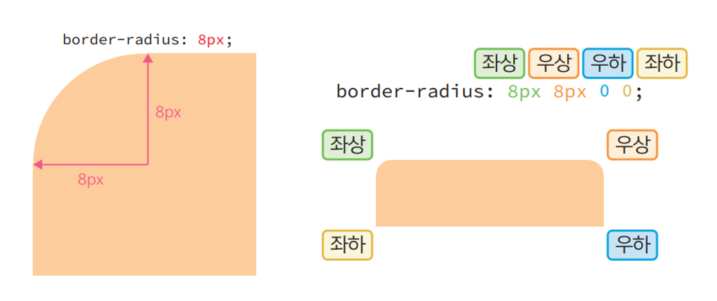 border-top-left-radius : 상단 왼쪽 모서리를 둥글게