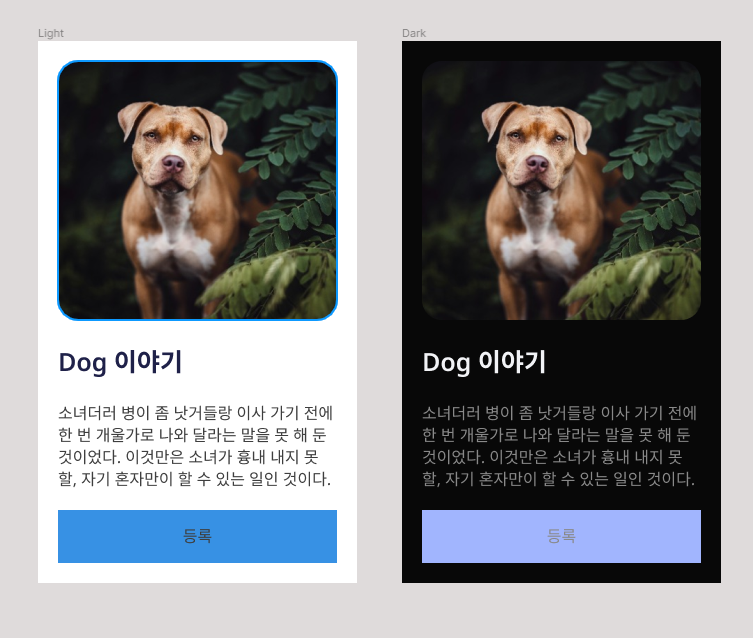 - 테마(Theme): 멀티 브랜드나 다양한 시각적 표현을 위한 컬렉션으로, 브랜드마다 다른 시맨틱 색상을 정의하는 데 사용. 여러 브랜드를 지원하는 디자인 시스템에서 중요한 역할.
