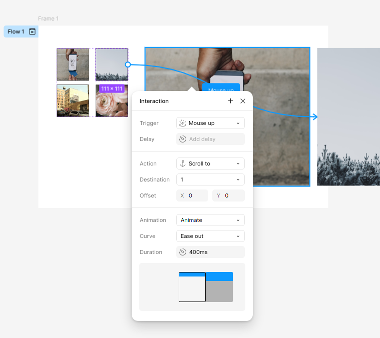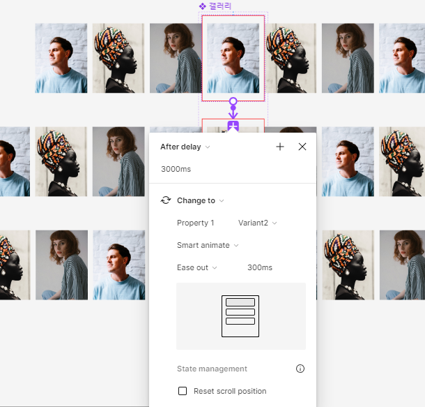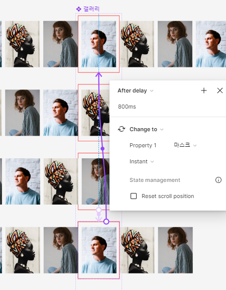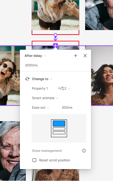 - 커넥션 : 두 프레임 사이의 애니메이션, 인터렉션을 연결하는 화살표