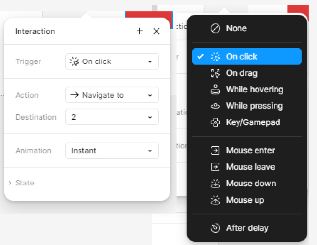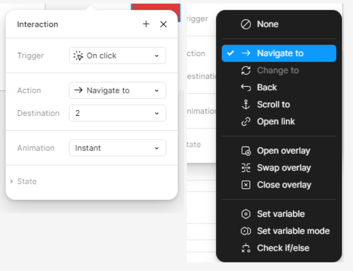 Open link : 특정 URL을 여는 액션(피그마 안의 특정 영역이나 프레임으로도 이동)
