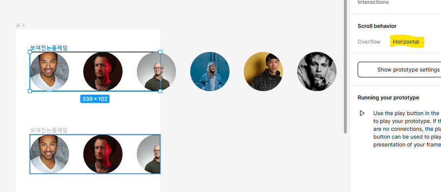 - Scroll behavior : 가로 스크롤, 세로 스크롤 옵션을 선택