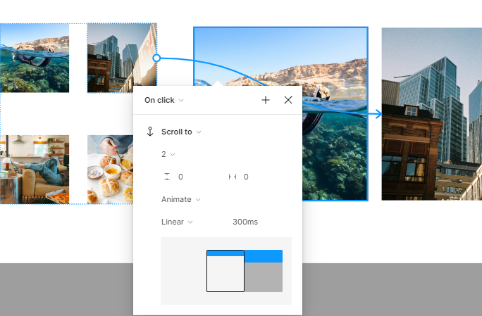 - Prototype 탭 On click - centered ( 프레임 가운데 위치 )