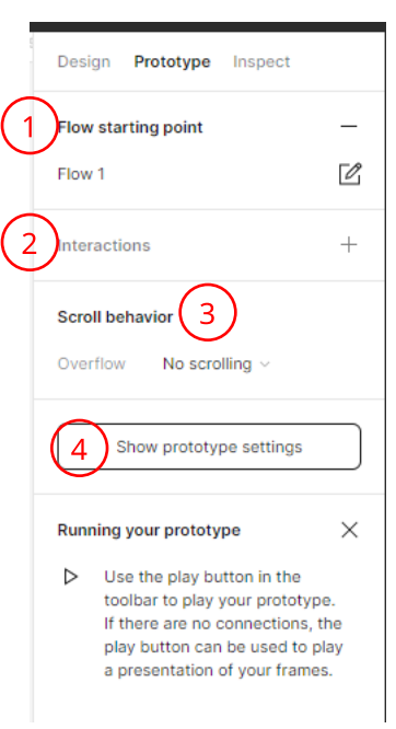 - Flow starting point : 프로토타입이 연결된 화면의 흐름입니다. 구분하기 쉽도록 이름을 변경할 수도 있고 , 해달 flow만 따로 공유할 수 도 있습니다.