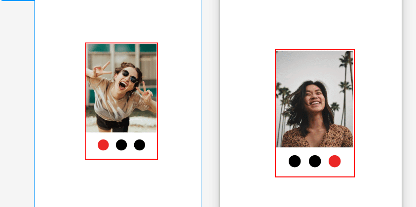 - 프레임 복사하고 안에 원을 각각 하나씩 크기와 색을 변경하기