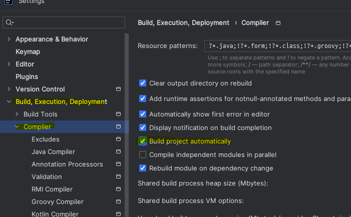 Setting > Build, Execution, Deployment > Compiler
