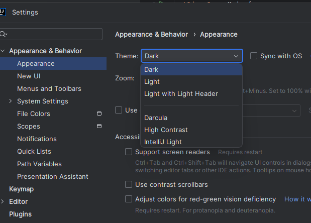 메뉴 > Settings > Appearance