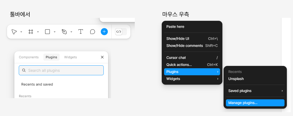 플러그인은 피그마의 디자인 생산성을 높여주는 대표적은 부가 기능입니다. 아이콘, 브래드 로고, 컬러, 더미 텍스트, 이미지제공, 누끼 이미지(배경이미지 삭제), 엑셀 작업 등 다양한 플러그인이 있으며 디자인 작업 시 플러그인을 활용하면 작업시간을 많이 단축할 수 있어 일의 능률을 높여줍니다.