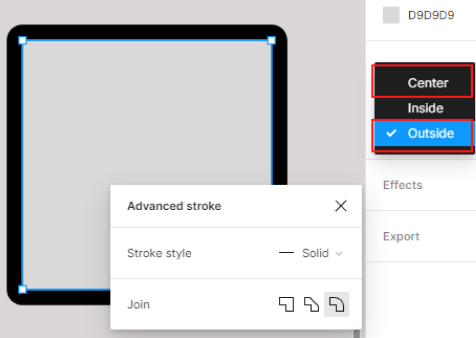 왼쪽은 선, 오른쪽은 Outline stroke 면 처리 - 테두리