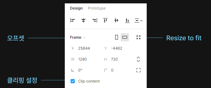- Clip content : 옵션 체크하면 레이어가 프레임에 걸쳐있을 때 해당 프레임에 잘려서 보입니다 ( css : overflow:hidden )