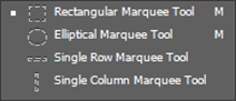 - Marquee Tool, Lasso Tool, Quick Selection Tool, Magic Wand tool