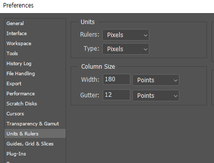 [Edit]-[Preferences]-[Units & Rulers] -[Pixels]