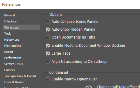 [Edit]-[Preferences]-[Workspace] -[open Documents as Tabs]