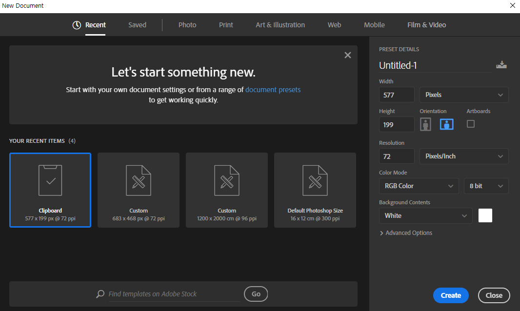 [Image]-[Image Size]에서 조절(일반적인 웹 이미지 해상도는 72 Pixel/Inch)