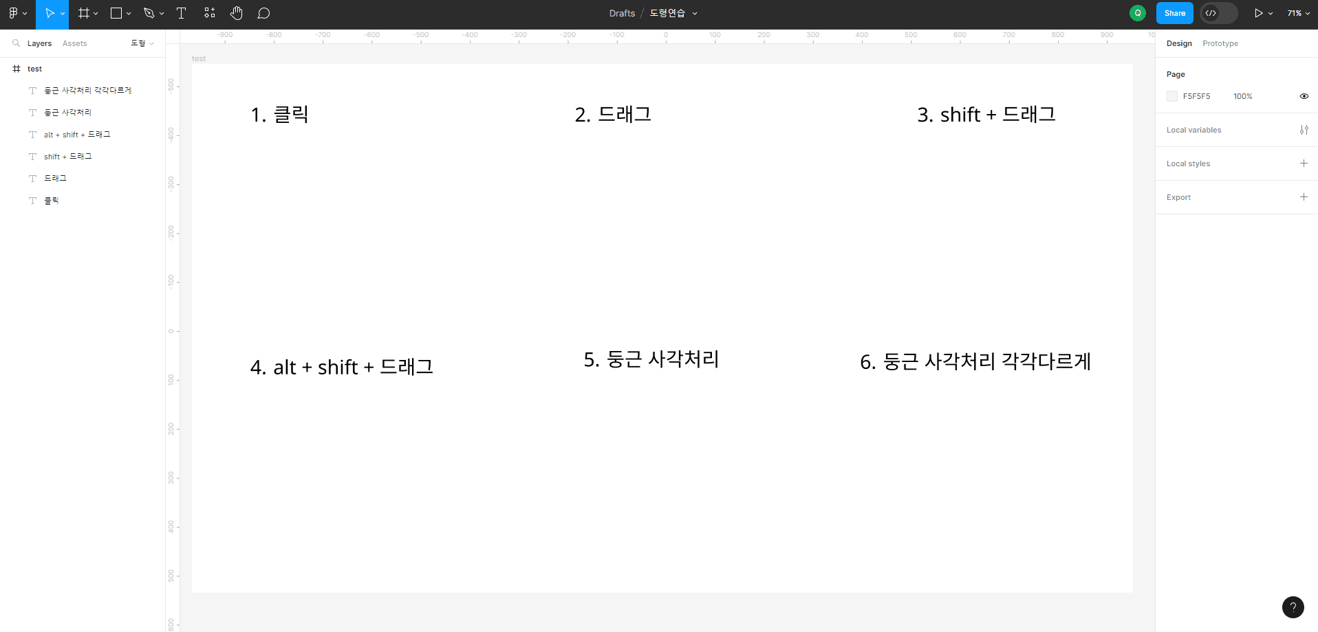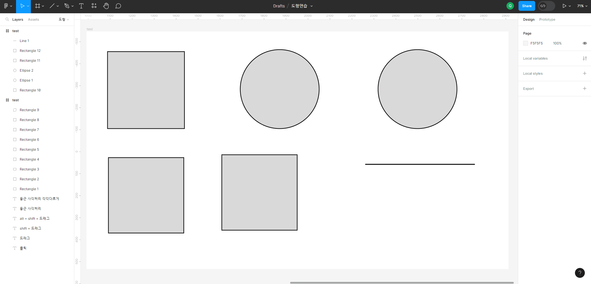 - 피그마에는 이외에도 다양한 도형이 제공됩니다. 예를 들어, 별, 삼각형, 오각형 등의 다양한 모양이 있습니다.