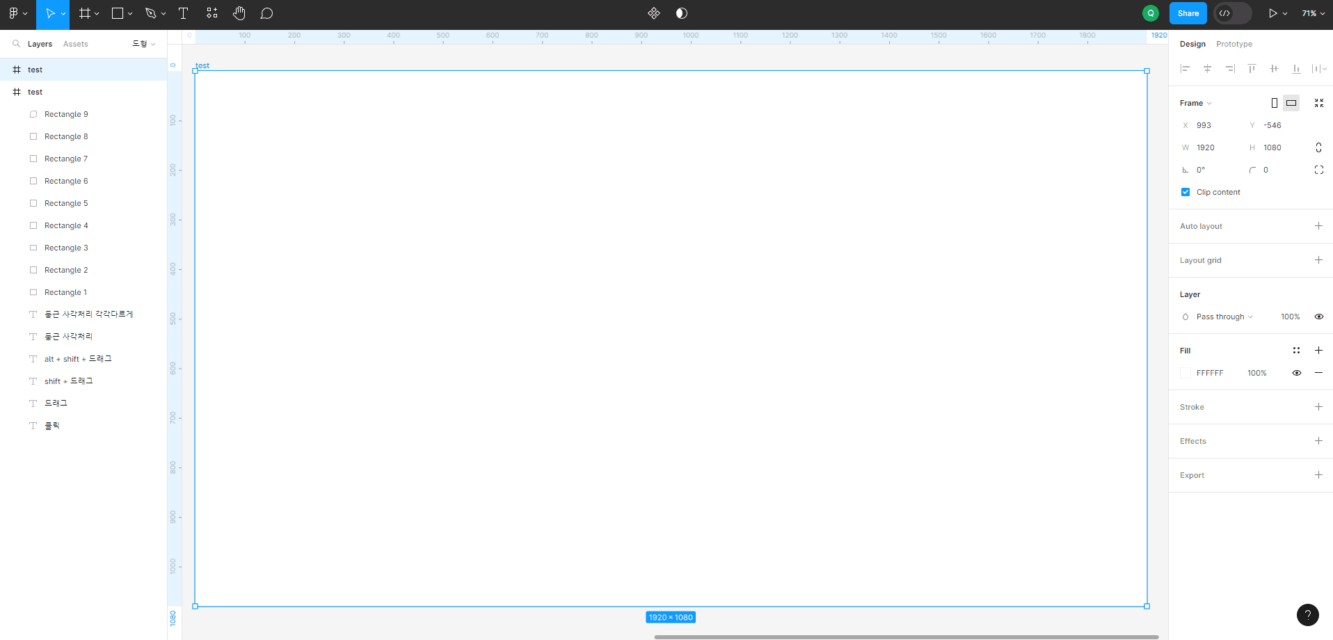 - 프레임 프리셋 : 아이폰, 안드로이드, 데스크톱 사이즈 등을 지정합니다. 프레임을 제어하는 기능 외에는 레이어와 동일하게 사용 가능합니다. , Frame , Group , Seciton 가능