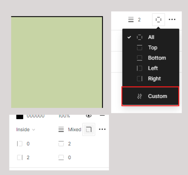 - Independent corners : 코너 라운딩 수치를 개별적으로 바꿀 수 있습니다.